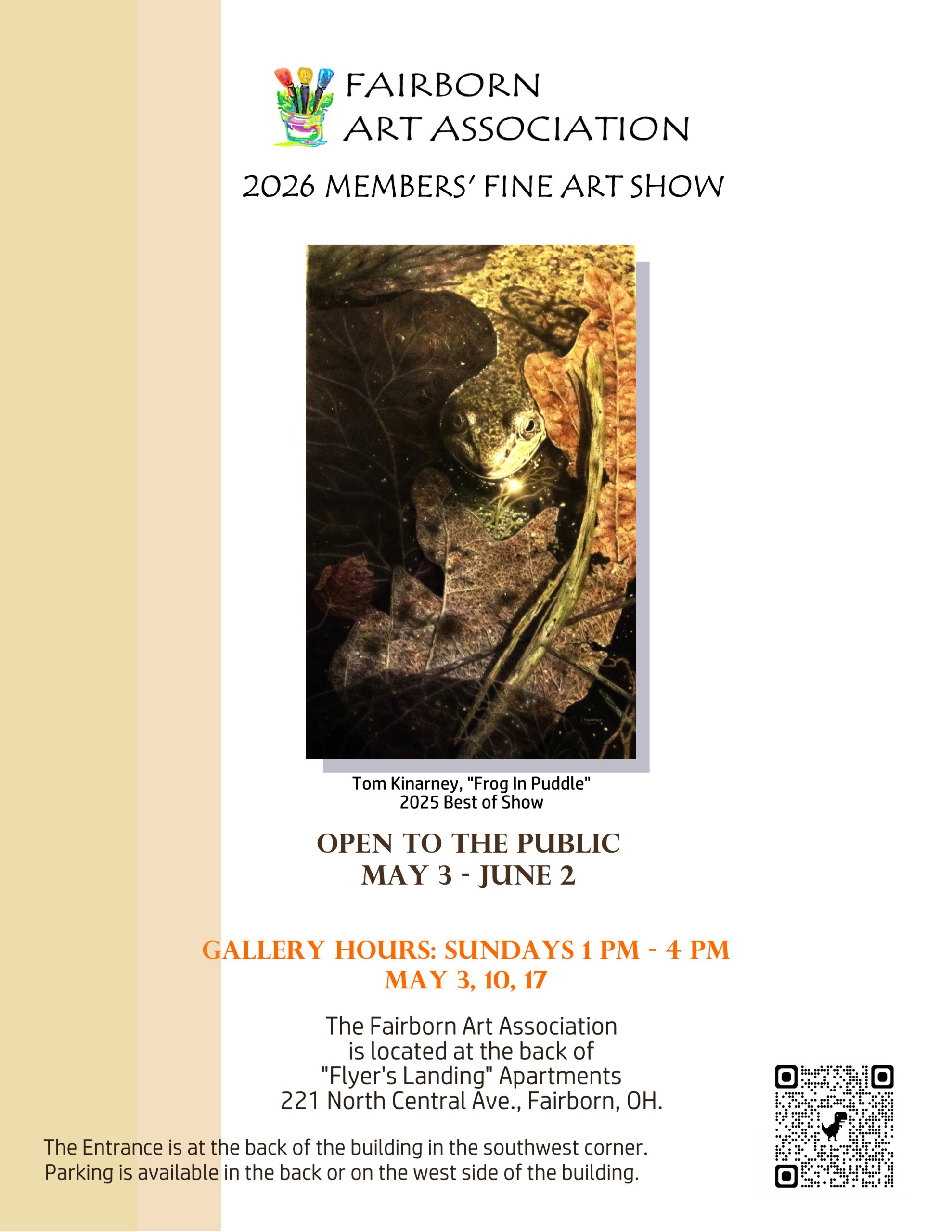 If you have access to the internet, please go to our website at https://www.fairbornart.org for additional articles throughout the month. We also post photographs of meetings and other events that we are unable to publish in the printed version of this newsletter.